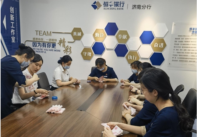 工作室帶頭人邢敏指導員工練習點鈔技能 業務轉型一馬當先 隨著網點向零售支行轉型,傳統柜員向具備營銷技能的綜合性人才轉型。創新工作室秉承“以客戶為中心”的服務理念,發揮勞模示范作用,帶動員工學習營銷技能,鼓勵大家“說出來”“做起來”。通過強化科技賦能,組織情景演練、技能分享活動,加強柜員與產銷經理、零售客戶經理之間的協同聯動,推動零運融合,在提升網點營銷能力方面發揮了積極作用。