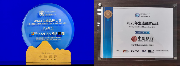 2023年8月29日,“2023(第二屆)生態品牌大會”在北京舉行,會上正式發布“2023年生態品牌勢能圖”,揭曉第二批成功獲得生態品牌認證的品牌,推出《生態品牌發展報告(2023)》。中信銀行從參評的百余個品牌中脫穎而出,在榜單中處于“突破者”位置,第二次獲得生態品牌認證,并被評為“生態飛躍之星”。