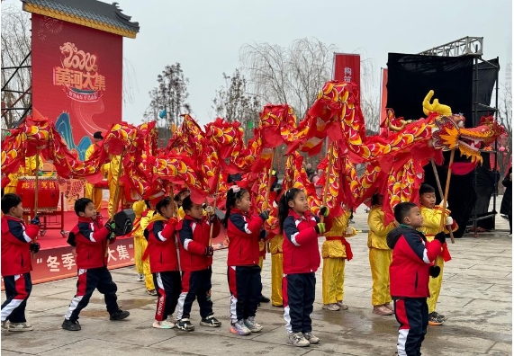 1月18日,平均年齡只有6歲的兩支幼兒舞龍隊,亮相2024春節(jié)山東鄉(xiāng)村文化旅游節(jié)暨山東省“冬季黃河大集”臨清分會場啟動儀式。