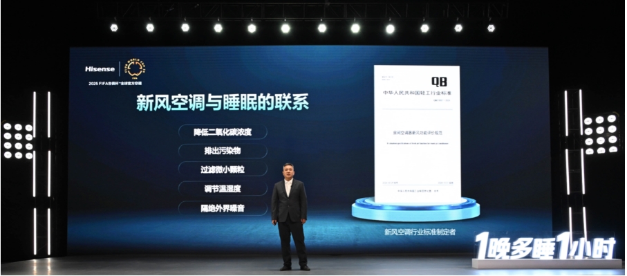 5月12日,在剛剛結(jié)束的“1晚多睡1小時—海信空調(diào)新風(fēng)生活方式發(fā)布會”上,海信正式推出新風(fēng)空調(diào)健康睡眠解決方案,并聯(lián)合中國睡眠研究會、中國家用電器研究院等多家權(quán)威機(jī)構(gòu)正式發(fā)布《新風(fēng)空調(diào)助眠白皮書》。現(xiàn)場多位專家表示,睡眠問題已成為都市人的“奢侈品”,上海交通大學(xué)教授吳吉祥在主題發(fā)言中,從科學(xué)視角闡釋睡眠對CO₂、甲醛、TVOC等環(huán)境質(zhì)量的要求,并指出新風(fēng)系統(tǒng)可有效降低二氧化碳濃度、減少污染物、去除異味,對提升睡眠質(zhì)量具有不可忽視的作用。