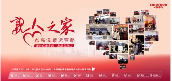 中國重汽打造的“親人之家”服務體系,致力于提升卡友的生活品質和職業尊嚴,為卡友們提供免費停車、免費休息、免費餐食、免費住宿、免費洗浴、免費洗衣等舒適如家的暖心服務。服務從車輛延伸至人,中國重汽通過“親人之家”為卡友們提供更多的關愛和幫助,構建有溫度的行業生態。