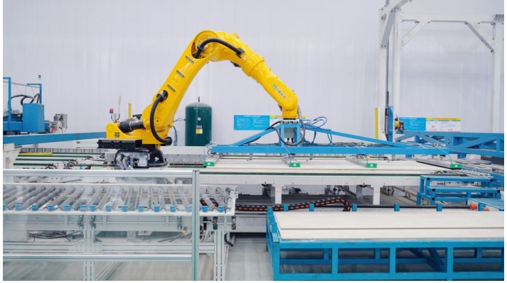 造房工廠里,工人正在給造房機器人發送指令,造房機器人在一條百米長的CMC智能生產線上高效流暢協同作業。僅需12分鐘,即可制造完成一面墻板;僅需2小時,一間模塊化房屋即可制造完成下線。樊則森介紹,CMC智能生產線是目前全國最先進、自動化程度最高的模塊化建筑智能生產線,經院士專家評審達到國際領先水平。相較人工生產線,CMC智能生產線自動化比例提升至80%,制造精度提升至毫米級,生產效率提升4倍以上,良品率提升5倍。